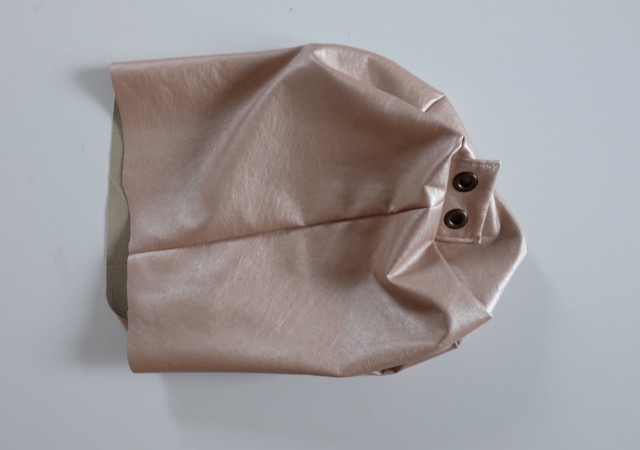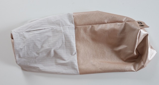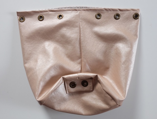Somit ist auch das „Ösen-Rechteck“ sauber mit eingefasst. Der Außenbeutel ist jetzt fertig.