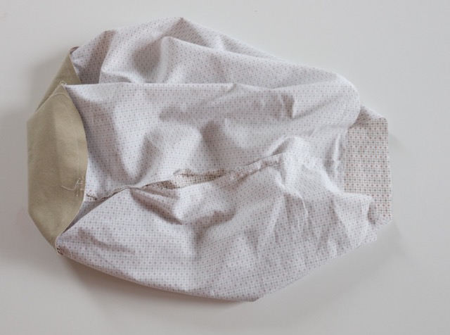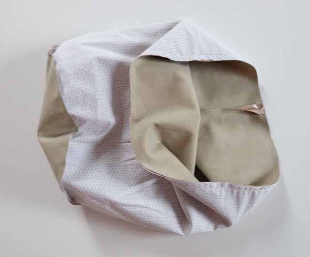 Wendt den Beutel dann durch die Wendeöffnung auf die rechte Seite und steckt den Innenbeutel in den Außenbeutel.