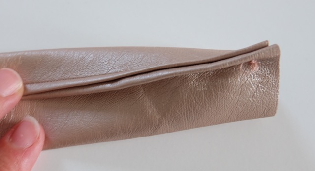 Der Stoff muss ein wenig elastisch sein, damit man ihn noch umschlagen kann. Andernfalls den Streifen etwas breiter schneiden und vorab testen.