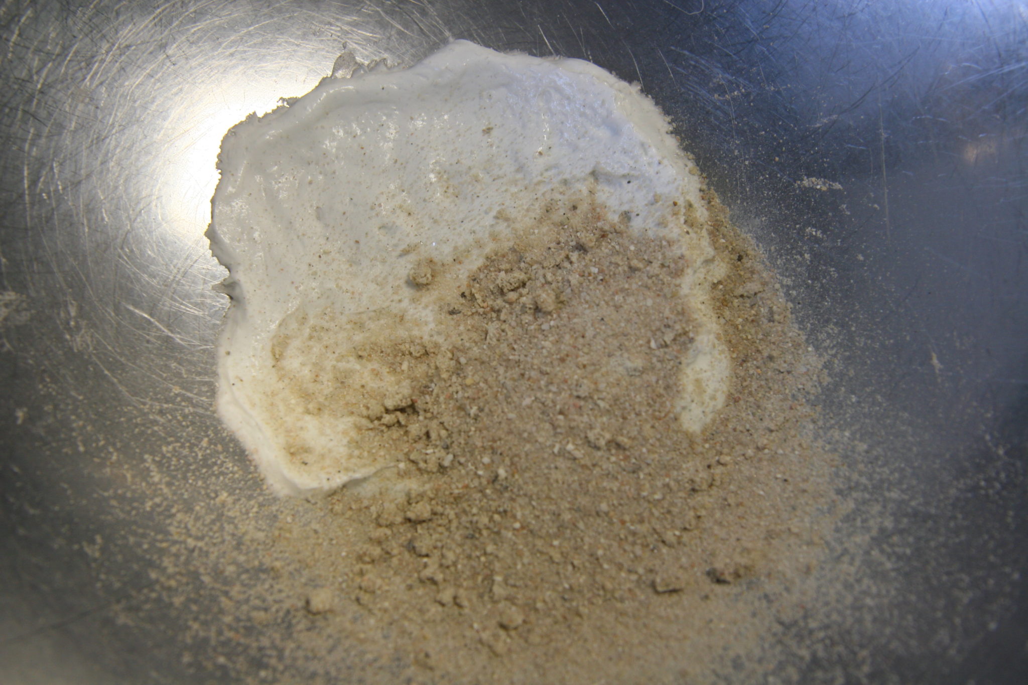Dann gibst du nach und nach Sand dazu, bis du die Konsistenz von kinetischem Sand hast. Während dessen kannst du auch wenn gewünscht die Lebensmittelfarbe mit einmischen.