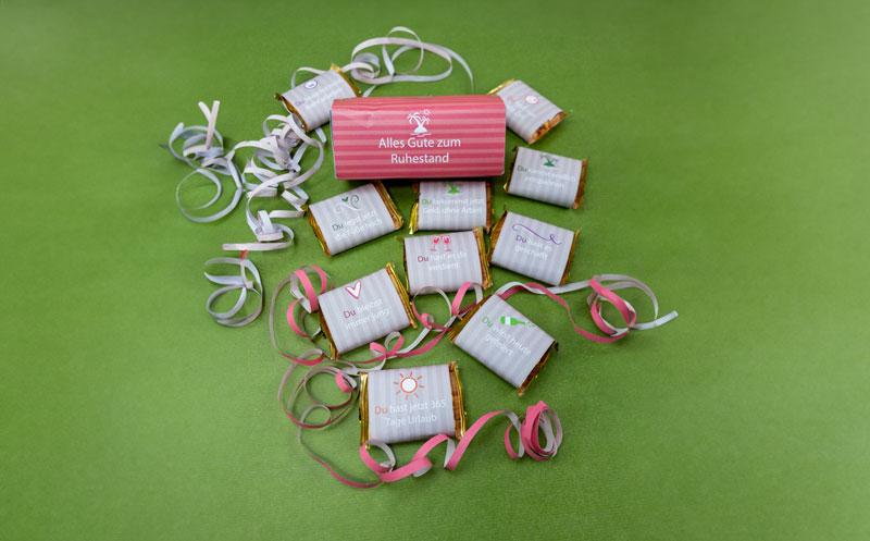 Süßigkeiten sind schon seit jeher ein beliebtes Geschenk, aber mit unseren personalisierten Banderolen wird sie zu etwas ganz Besonderem. Ob es nun um aufmunternde Worte geht oder um ein Dankeschön für die gemeinsame Zeit – unsere Banderolen sind mit liebevoll gestalteten Sprüchen bedruckt, die jede Süßigkeit in eine Leckerei verwandeln.