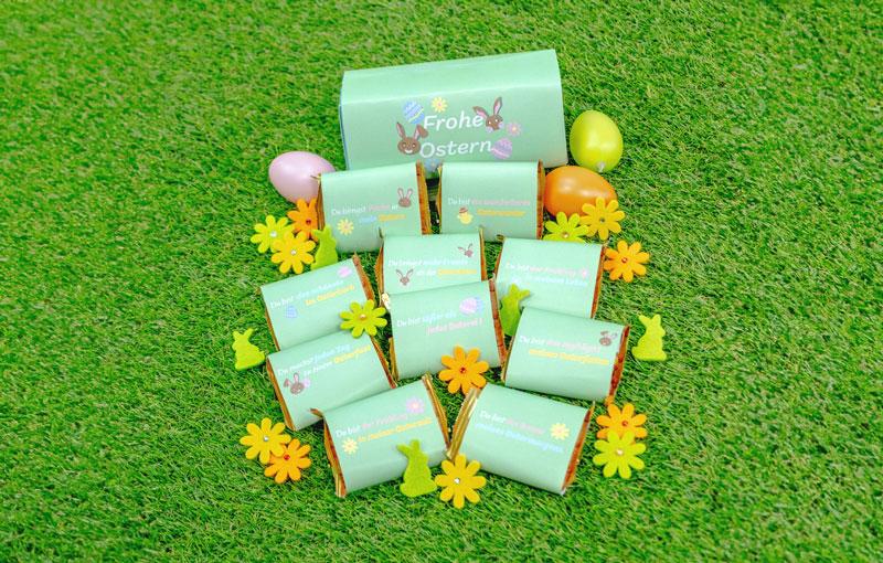 Diese Banderolen sind nicht nur für Ostern geeignet. Ob Geburtstage, als kleine Aufmunterung für Kollegen oder einfach nur so – mit diesen Schokoladenwaffel-Banderolen trefft ihr immer ins Schwarze. Jede Banderole kommt mit einem vorgefertigten, liebevollen Spruch, der eurem Geschenk eine persönliche Note verleiht.