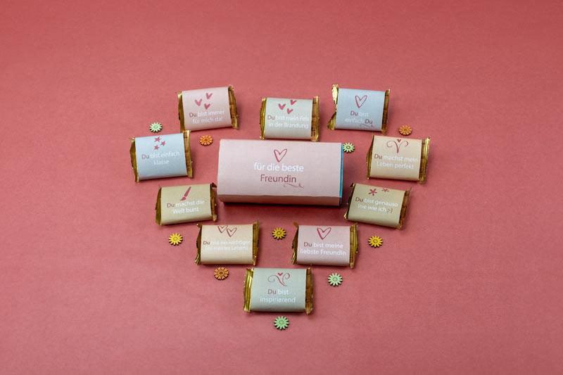 Jede unserer Banderolen trägt eine liebevolle, witzige oder aufmunternde Botschaft. Sie sind ideal, um als kleine Aufmerksamkeit zwischendurch zu dienen, sei es für eure besten Freundinnen, Kolleginnen oder sogar als kreatives Mitgebsel bei Geburtstagsfeiern. Ihr benötigt lediglich Hanuta und unsere Banderolen, die ihr nach dem Download einfach ausschneiden und um die Schokoriegel wickeln könnt.