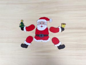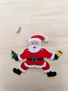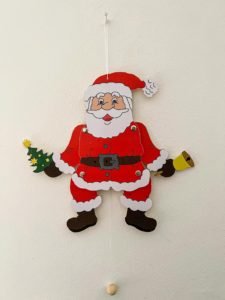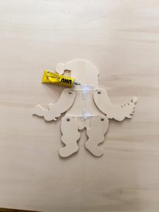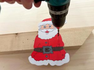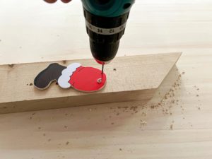 Jetzt bohre das letzte Loch am Kopf des Weihnachtshampelmannes und befestige dort eine Schnur zum Aufhängen. Herzlichen Glückwunsch! Du hast erfolgreich einen Weihnachtshampelmann hergestellt.