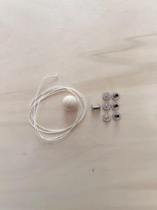 Verbinde die letzte Schnur mit den beiden anderen Schnüren und befestige die Holzkugel am Ende der Schnur.