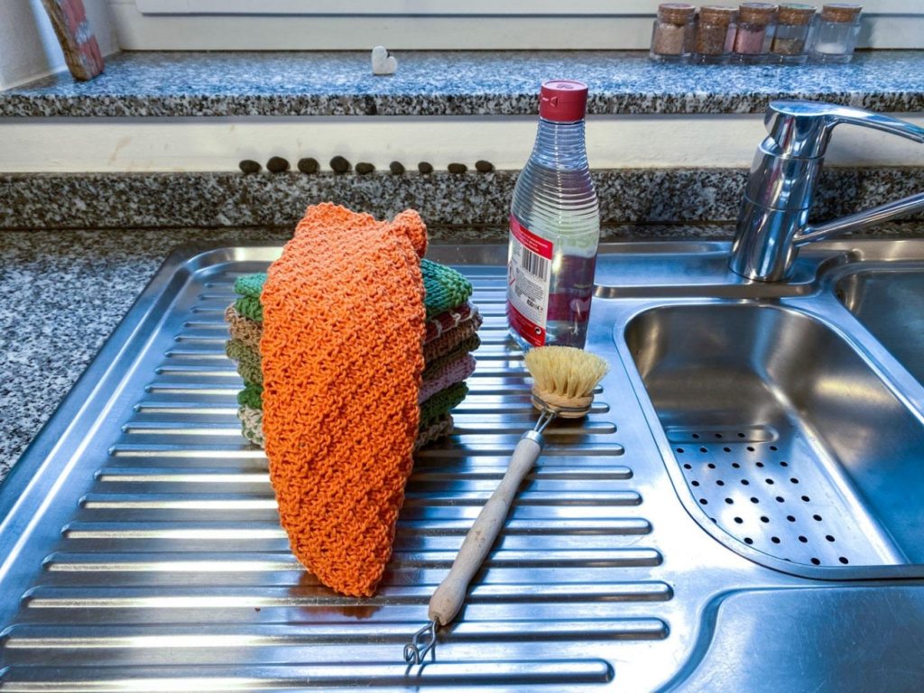 Du hast auch schon langsam Spaß daran gefunden, dich mit diesen schönen Spültüchern auszustatten? Das ist total verständlich, denn diese sind in der Küche der totale Hingucker. Und dazu sind sie noch extrem praktisch. Ich habe meine Tücher in verschiedenen Farben gestrickt; meine Küche ist in sanften Naturfarben gehalten, so dass – meiner Meinung nach – etwas Farbe gut tut. Aber auch die gesamte Spültücher-Reihe in ein oder zwei Farben gehalten, ist total schön, denn durch die verschiedenen Muster sind die Spültücher sehr unterschiedlich. Aber das ist natürlich Geschmackssache. Also, ran an die Wolle 😉