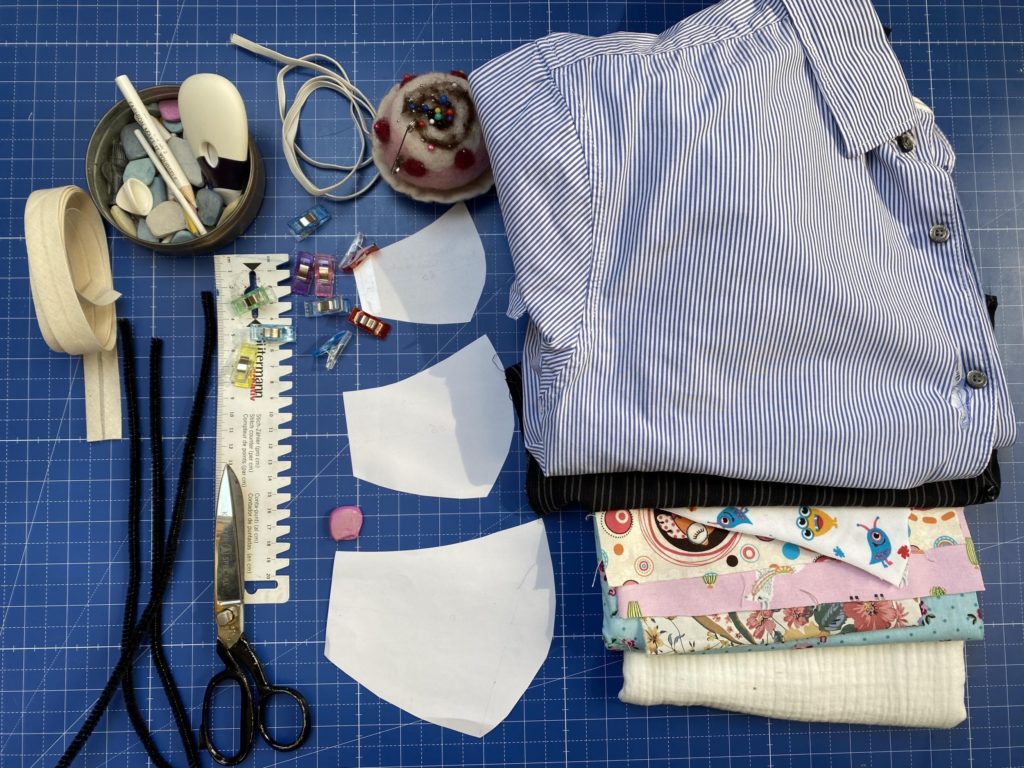 Je nach Vorliebe mag man lieber das Modell mit den Falten oder das nachstehende Modell mit der Mittelnaht. Schritt-für-Schritt zeigen wir euch, wie ihr euch, euren Kindern und Kleinkindern eine Mund-Nasenmaske selbst nähen könnt. Die Vorlage haben wir dazu in drei Größen gefertigt, die ihr hier kostenlos herunterladen könnt. Die Mund-Nasenmaske ist schnell hergestellt – und ihr benötigt dazu nicht viel Material. Die meisten von euch haben sowieso Berge von Stoffresten. Ich habe ein kaputtes Baumwoll-Herrenhemd verwendet! Also auch noch ein perfektes Upcycling-Projekt. Jetzt könnt ihr die Stoffreste sinnvoll verwenden!