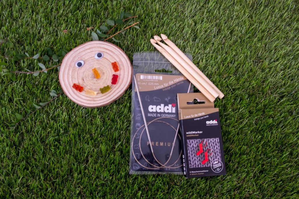 - Nützliches Zubehör für den Strick- und Häkelbegeisterten DIYster von addi wie Stricknadeln, dicke Häkelnadeln aus Bambus und praktische Maschenmarkierer.