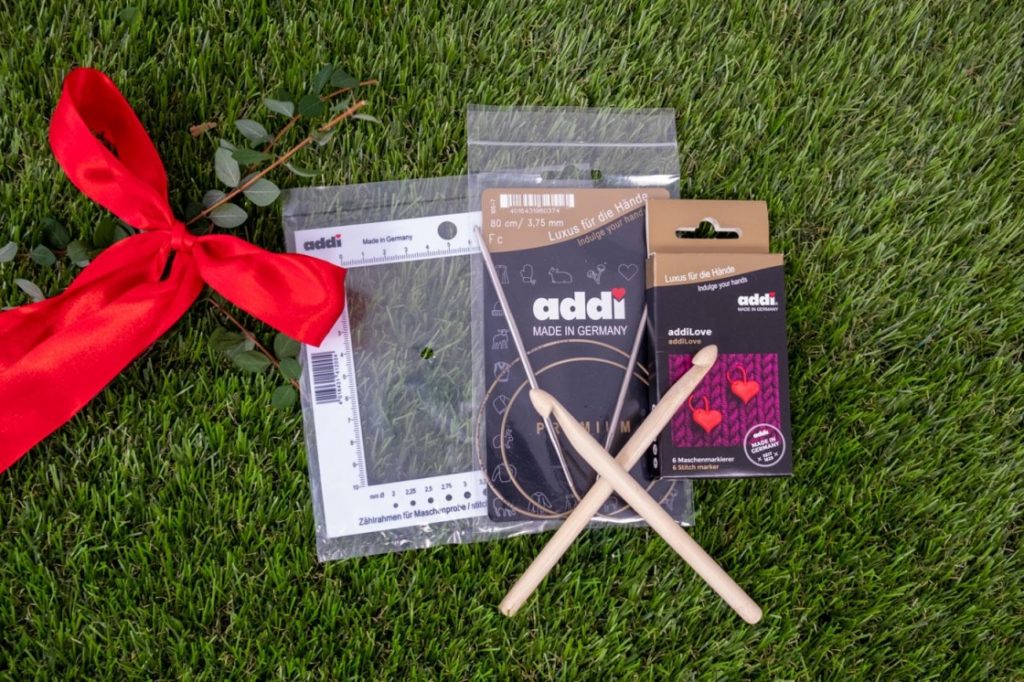 • Nützliches Zubehör für den Strick- und Häkelbegeisterten DIYster von addi wie Zählrahmen, Stricknadeln und praktische Maschenmarkierer.