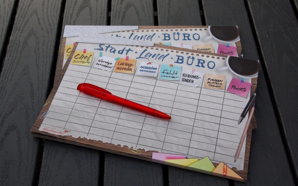 Das Stadt Land Büro Tischset ist wie der Name schon verrät ideal für eine kleine Pause im Büro oder auf der Arbeit. Die Kategorien sollten dabei nicht all zu ernst genommen werden 😉