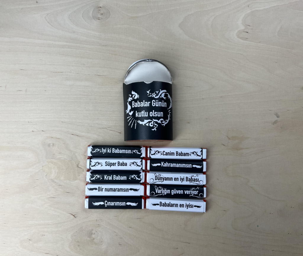 Schoko-Riegel Banderolen zum Vatertag auf Türkisch