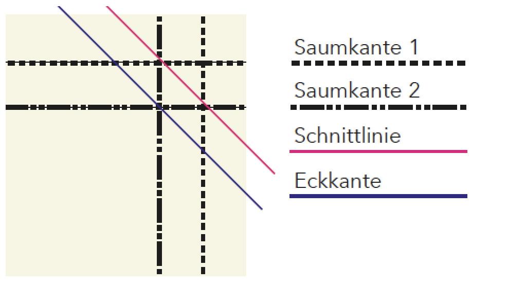 - Stoff an der Ecke entlang der Schnittlinie abschneiden.