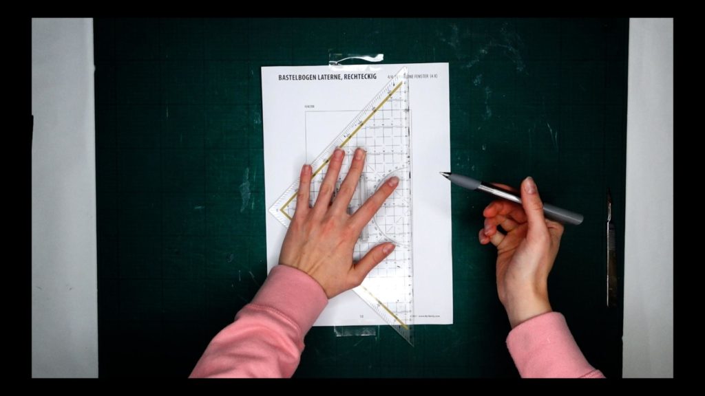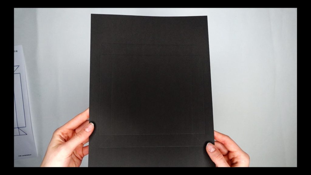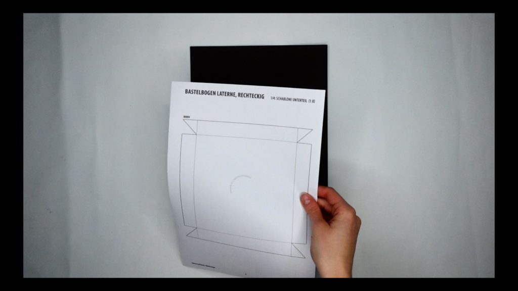 Nachdem ihr die Anleitung samt den Bastelvorlagen ausgedruckt habt, legt ihr die Motive für den Boden, den Deckel und die Streben auf euere Pappe oder euren Bastelkarton.