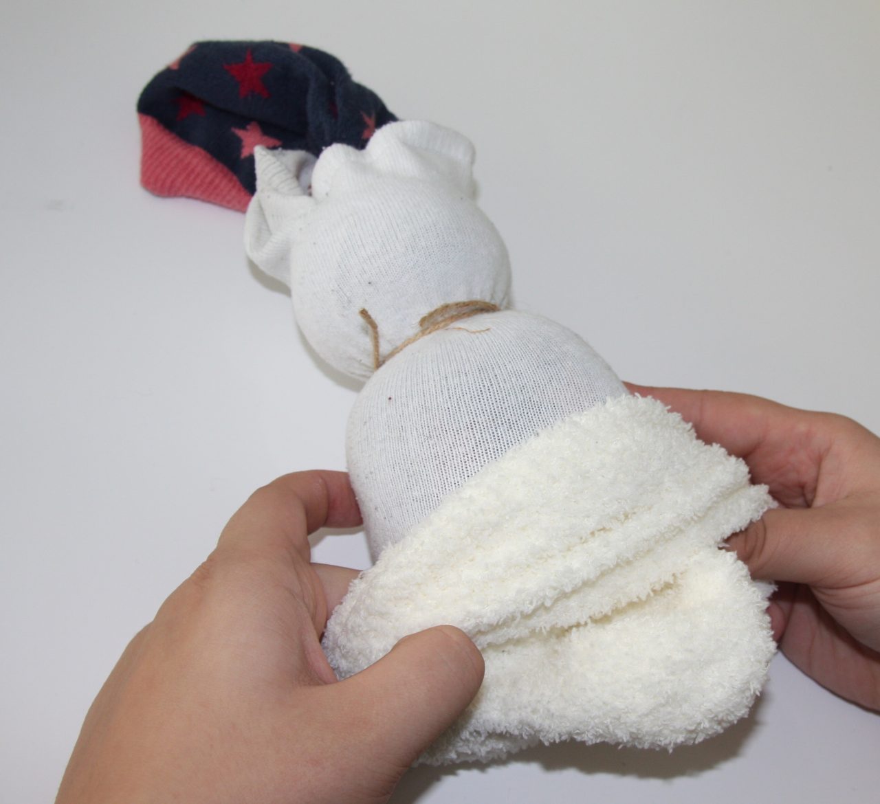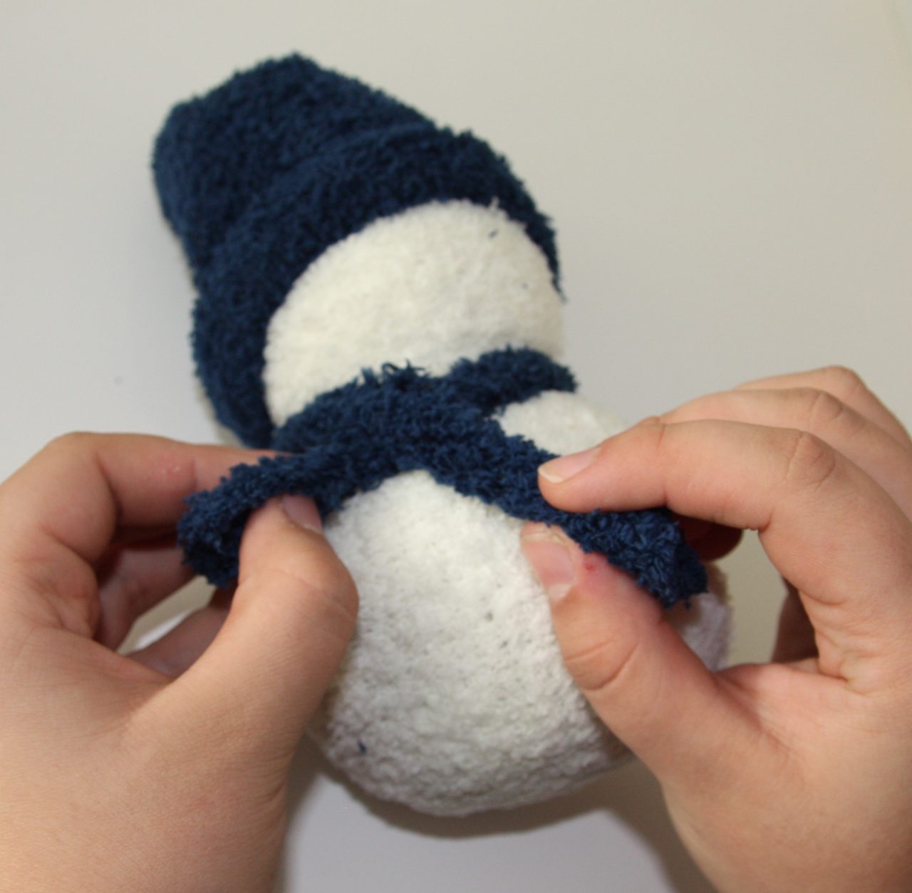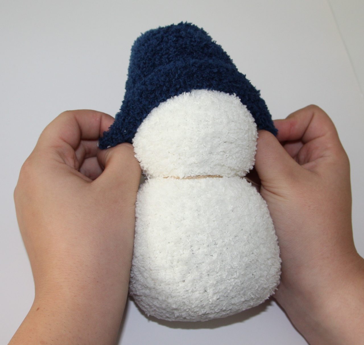3. Schritt: Die richtige Socke über den Schneemann ziehen