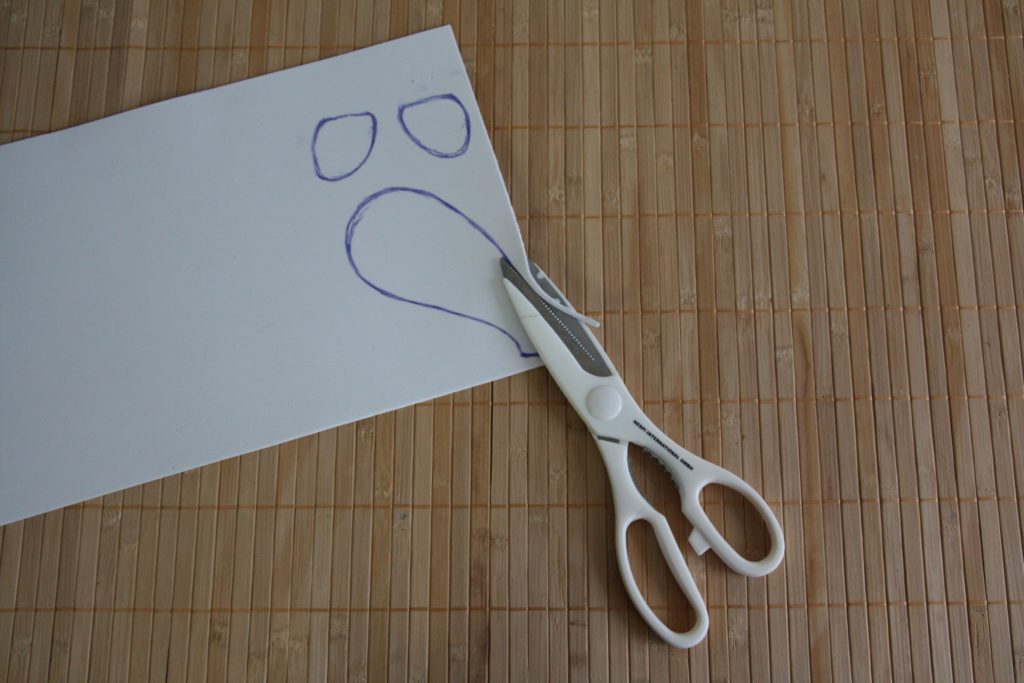 - Schwanz auf den Moosgummi (weiß) mit Kugelschreiber aufzeichnen
