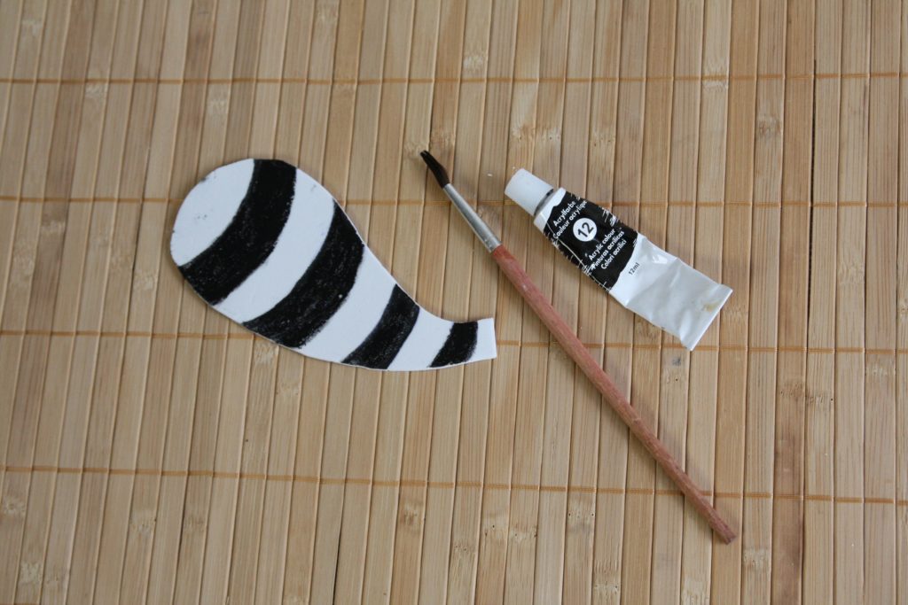 - Streifen mit schwarzer Farbe (mitteldickem Pinsel) ausfüllen – mehrere Schichten wenn nötig