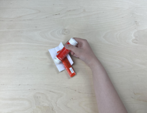 Sonra bir adet kinder çikolatayı alıp bandrol ile kaplayıp tutkal veya yapıştırma bandı ile yapıştırıyoruz. Bu işlemi 10 adet çikolataya uyguluyoruz.