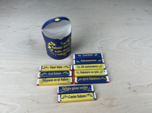 Böylelikle kolaylıkla hazırlayabileceğiniz, babalar gününe hediye edebileceğiniz özel mesajlı çikolataları hazırlamış oluyorsunuz. Babalar candır 😊.