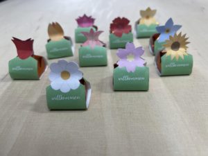 Danach nimmst du einen Ferrero Küsschen legst es in die Vorlage, dann umwickelst die Schokolade mit der Vorlage und befestigst diese mit einem Klebestift.