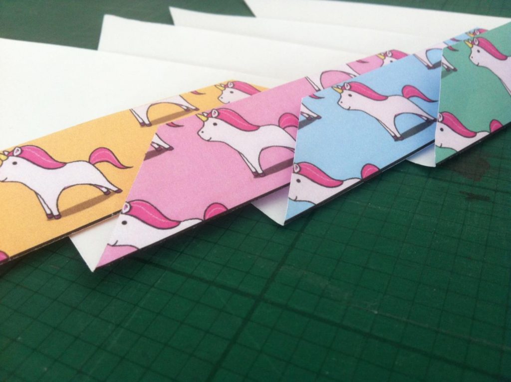 Ich bin total begeistert davon, wie schnell und einfach diese zu basteln sind und dachte mir, dass es doch toll wäre, noch weitere Muster dafür zu gestalten. Meine Nichte bat mich darum, etwas mit Einhörnern zu machen. Also habe ich direkt ein paar Zeichnungen gemacht und ein kleines Einhorn kreiert, dass sich hervorragend für ein Fahnen-Muster eignet. Für diejenigen, die meinen Beitrag zu den Retro-Wimpeln nicht gelesen haben, stelle ich die Anleitung hier noch einmal Schritt für Schritt vor. Also los geht’s!