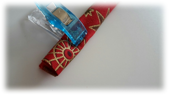 Denn erst machen wir die Schlaufe von dem Stiefel. Dafür schneidest du einen Stoff-Streifen mit den Maßen 4 cm x 10 cm aus und faltest diesen zweimal zur Mitte hin zusammen. Danach nähst das dann knappkantig zusammen.