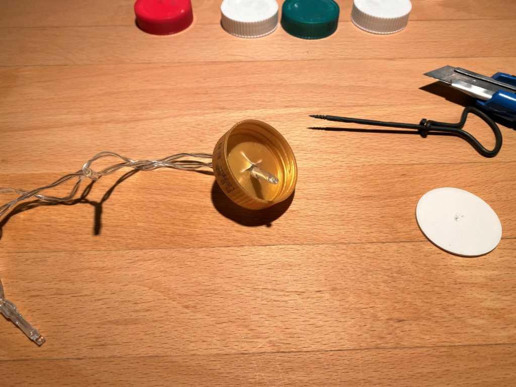 - Im nächsten und gleichzeitig letztem Schritt setzt ihr die kleinen Glühbirnen in das Loch und schließt den Deckel.