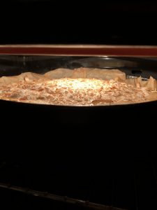Jetzt kannst du deinen Teig in eine Springform drücken. Gib acht das du den Rand hoch genug machst damit später nichts überläuft! Stelle die Springform für circa 30 Minuten in den Kühlschrank.