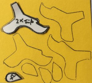Zunächst fertigt ihr die Schablonen an. Die Vorlage könnt ihr als PDF downloaden. Die einzelnen Teile übertragt ihr auf Karton und schneidet diese aus.
