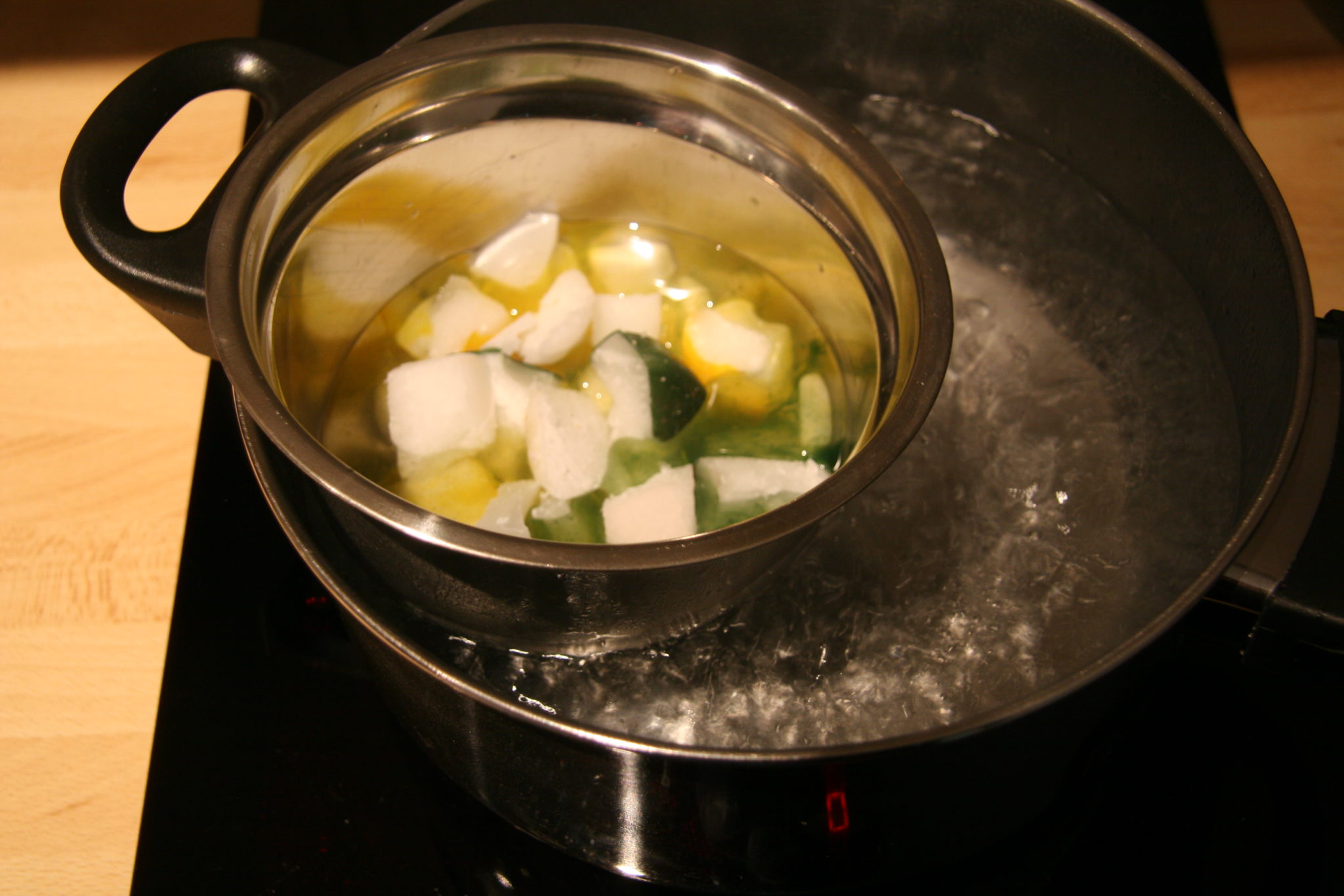 2. Schritt: Das Wachs in einem Wasserbad erhitzen