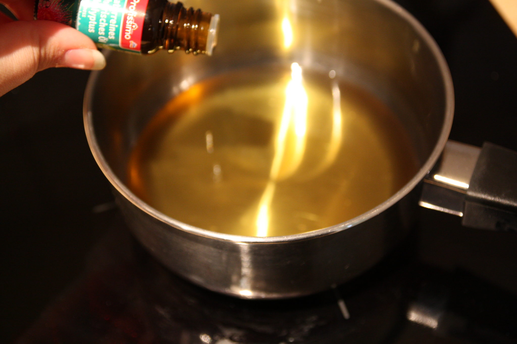 Als nächstes gibst du etwas Eukalyptus-Öl dazu. Ich habe 25 Tropfen genommen aber du kannst die Menge daran anpassen wie stark deine Erkältungssalbe werden soll.