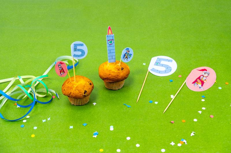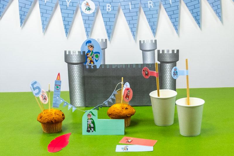 Um deinen Kuchen noch individueller zu gestalten, findest du in unserem Kindergeburtstagsset unter dem Motto „Ritter“ tolle Cake-Topper, Strohhalm-Anhänger und Getränkeaufkleber zum Ausdrucken und Ausschneiden. Diese kleinen Details machen deinen Kuchen nicht nur zu einem echten Hingucker, sondern sorgen auch für Begeisterung bei den kleinen Rittern und Burgfräulein.